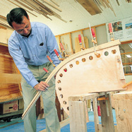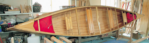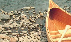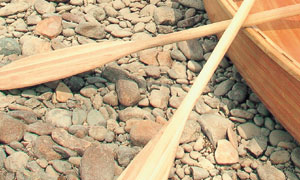 カヌーは、主にカナディアンカヌーとカヤックに分類できるが、中田さんが造るのは、カナディアンカヌーでも秋田杉を使ったウッドカヌー。中田さんは、「米代川では昔、山で伐採した秋田杉を能代港まで流して運ぶいかだ流しが行われていた。ここで川を下るなら秋田杉だと思った。木の質もカヌーに合っている」と話す。 |